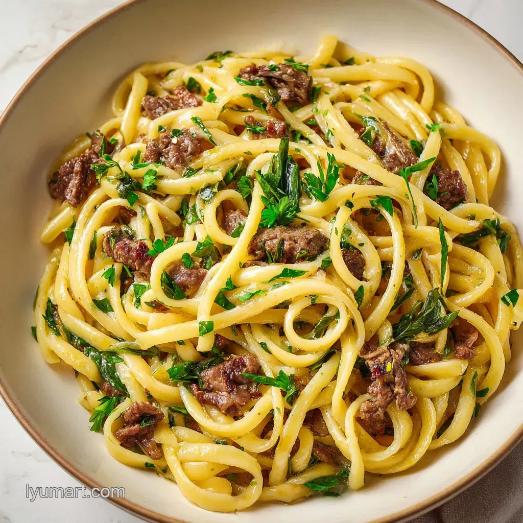 Creamy Beef And Garlic Pasta