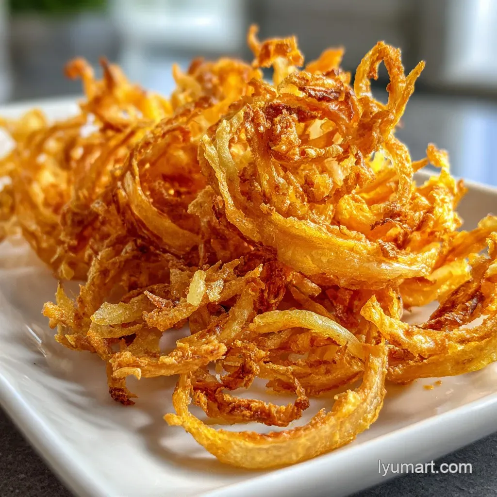 Slice onions thinly and coat them in a light flour and cornstarch mixture. Fry in oil heated to precisely 375°F (190°C) in small batches until golden brown, ensuring they drain on a wire rack to maintain crispness.