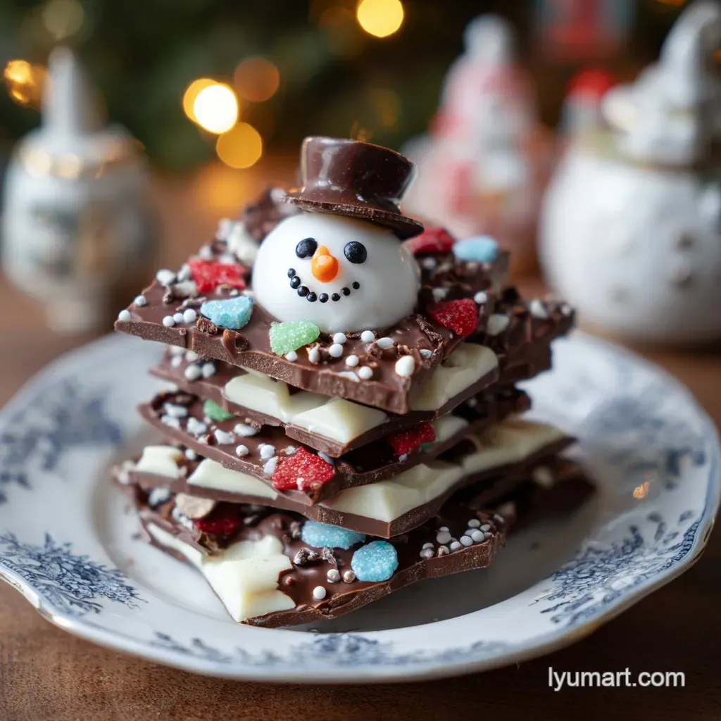 - Break and serve. Carefully break the bark into 16 large shards, ensuring each shard contains one snowman. Note: Use a sharp knife for cleaner edges if preferred.